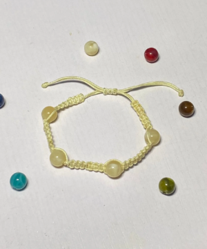 Lengkapi tampilan elegan dan minimalis dengan Gelang Macrame Tali Giok ini. Dirangkai dengan teknik anyaman macrame yang kuat dan fleksibel, gelang ini menggunakan tali giok berkualitas tinggi yang memiliki kilau natural. Dipadukan dengan manik-manik batu alam yang memberikan kesan mewah dan menenangkan.